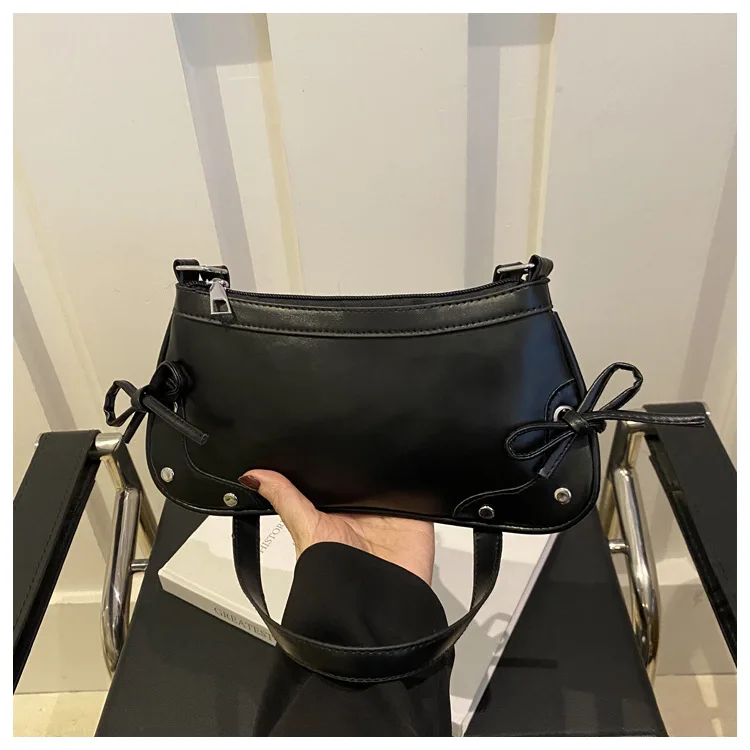 New Armpit Bag Trendy Shoulder Bag Sweet Double Bow Handbag Women's Bag Retro Simple Fashion Armpit Bags